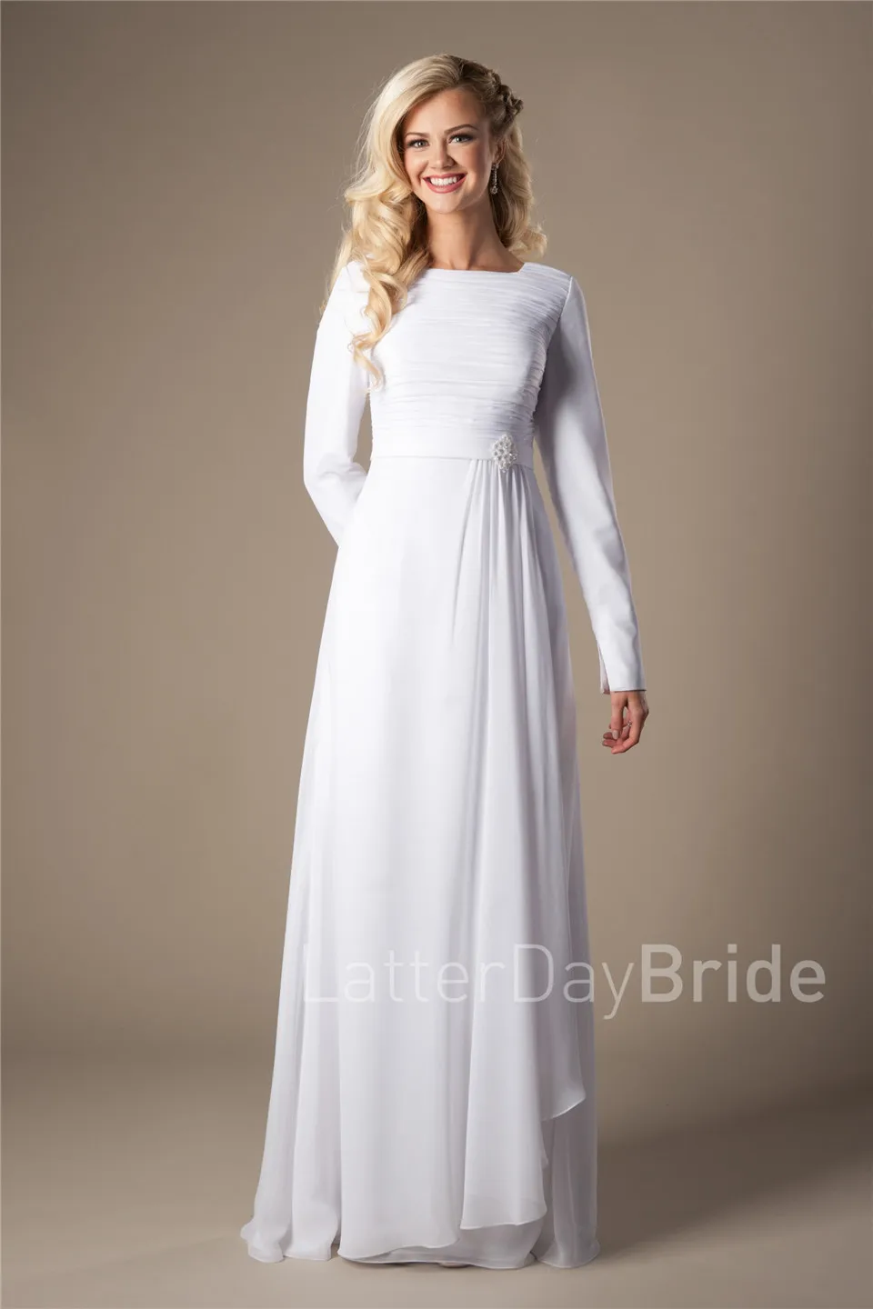 Melissa sweet illusion sleeve faux plus size wedding dress. $379 illusion long sleeves lace & satin modest. $299 strapless beaded bodice ruffled organza wedding dress. Bateau neckline | boat neckline dresses provide more coverage while accentuating the neck and collarbone.