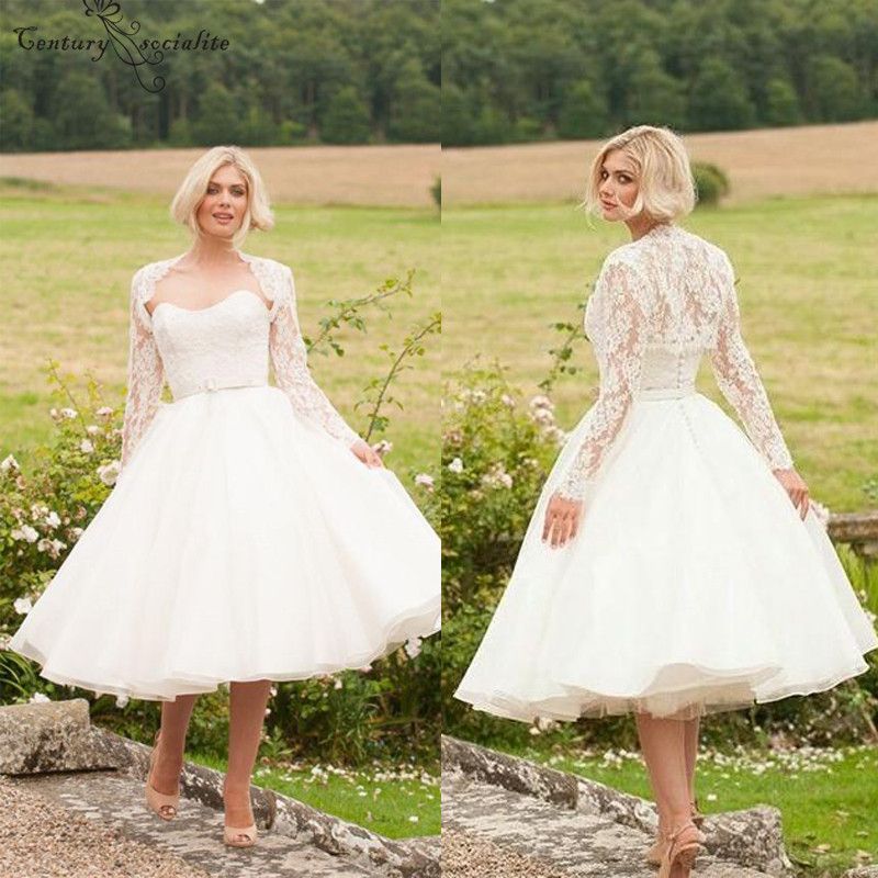 Long Sleeve Tea Length Bridal Gowns