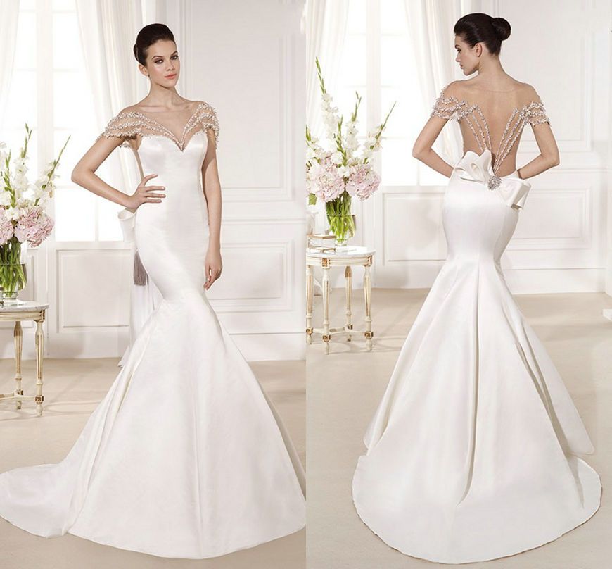 Gallery of Wedding Dress Mermaid Cut Tulip Sleeves Sweetheart Neckline